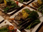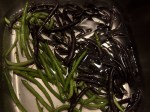 Je voulais créer un liant à tout ça pour éviter que ce soit trop sec. Je suis partie de pesto que j’avais préparé la semaine dernière. Je l’ai mis au robot avec des amandes, un peu d’huile, de la levure alimentaire, de l’ail, de la crème de soya et un peu d’eau et c’est devenu une crème onctueuse. J’ai aussi préparé une petite sauce pour les haricots avec du miso, du tamari, du sirop d’érable, de la levure alimentaire et de l’huile de sésame. Tout était prêt en moins de deux heures et je crois bien avoir battu un record de vaisselle à laver. Comme à la télé. Restait plus qu’à attendre les invités.