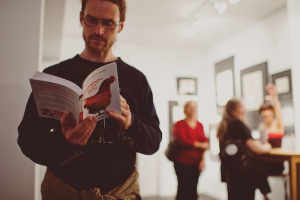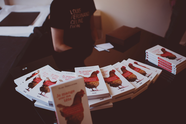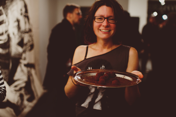 Le 12 octobre dernier, on était plus de 150 à la galerie Nowhere pour célébrer le lancement de Je mange avec ma tête. J’avais envie d’un gros party pour remercier tous ceux qui, de près ou de loin, m’ont épaulée pendant ces longs mois de recherche, de rédaction et de révision… Et exactement ce que j’ai eu! Plein d’amis, de la bouffe, du vin et de la musique, tout ça entourés des oeuvres de ma copine Karine Turcot qui avait monté une expo pour l’occasion.