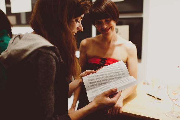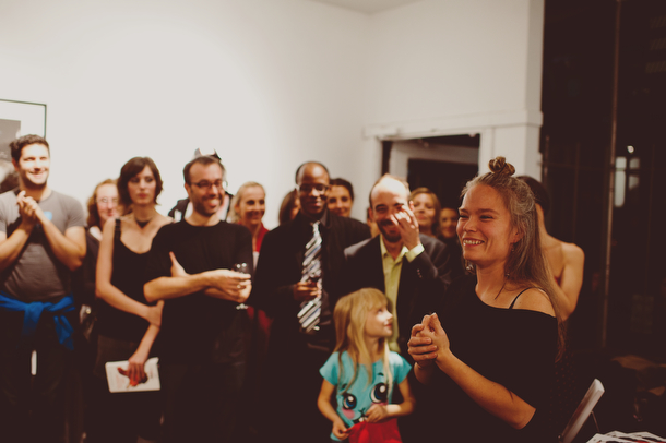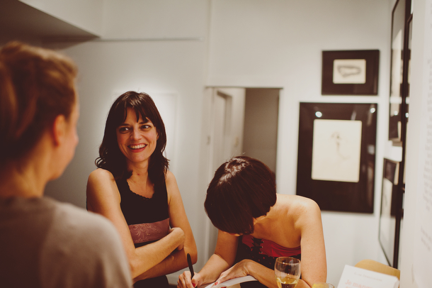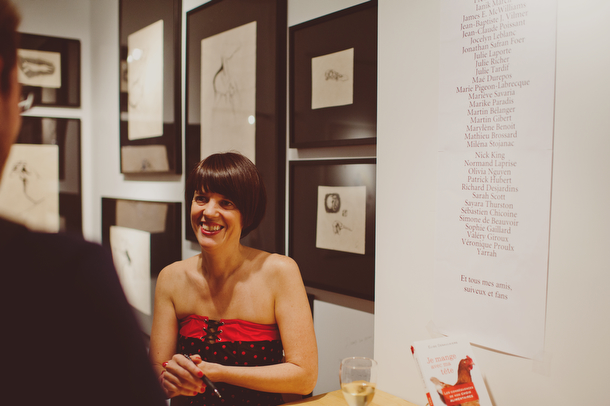 Je viens tout juste de recevoir les photos que Sarah Scott a prises de la soirée et je vois enfin plein de gens qui sont passés et que je n’ai pas pu saluer, les beaux plateaux de bouffe, le boulot d’arrière scène… Merci !