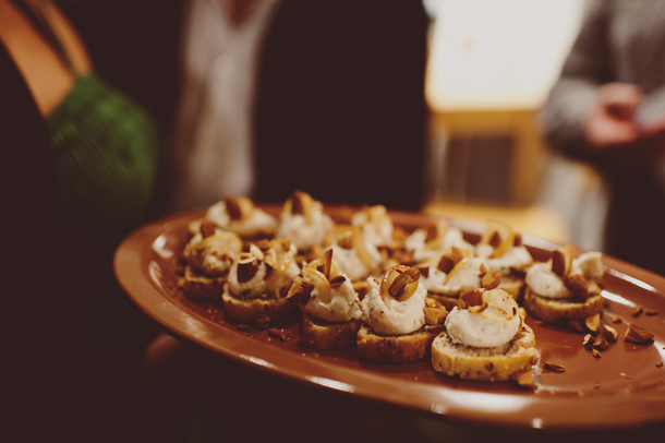 Puisque plusieurs d’entre vous me l’ont demandé, voici une partie du générique de la soirée. Le vin a été importé via Julie Richer de Antoinette et Bacchus. Ce sont des vins biodynamiques à prix très doux, moins de 10$ la bouteilles. La musique était de Monsieur Seb. Les bouchées ont été réalisées par deux copines, Dominique Dupuis de l’Armoire du Haut et MariÈve Savaria de Brutalimentation qui ont été assez généreuses pour me donner leurs recettes.