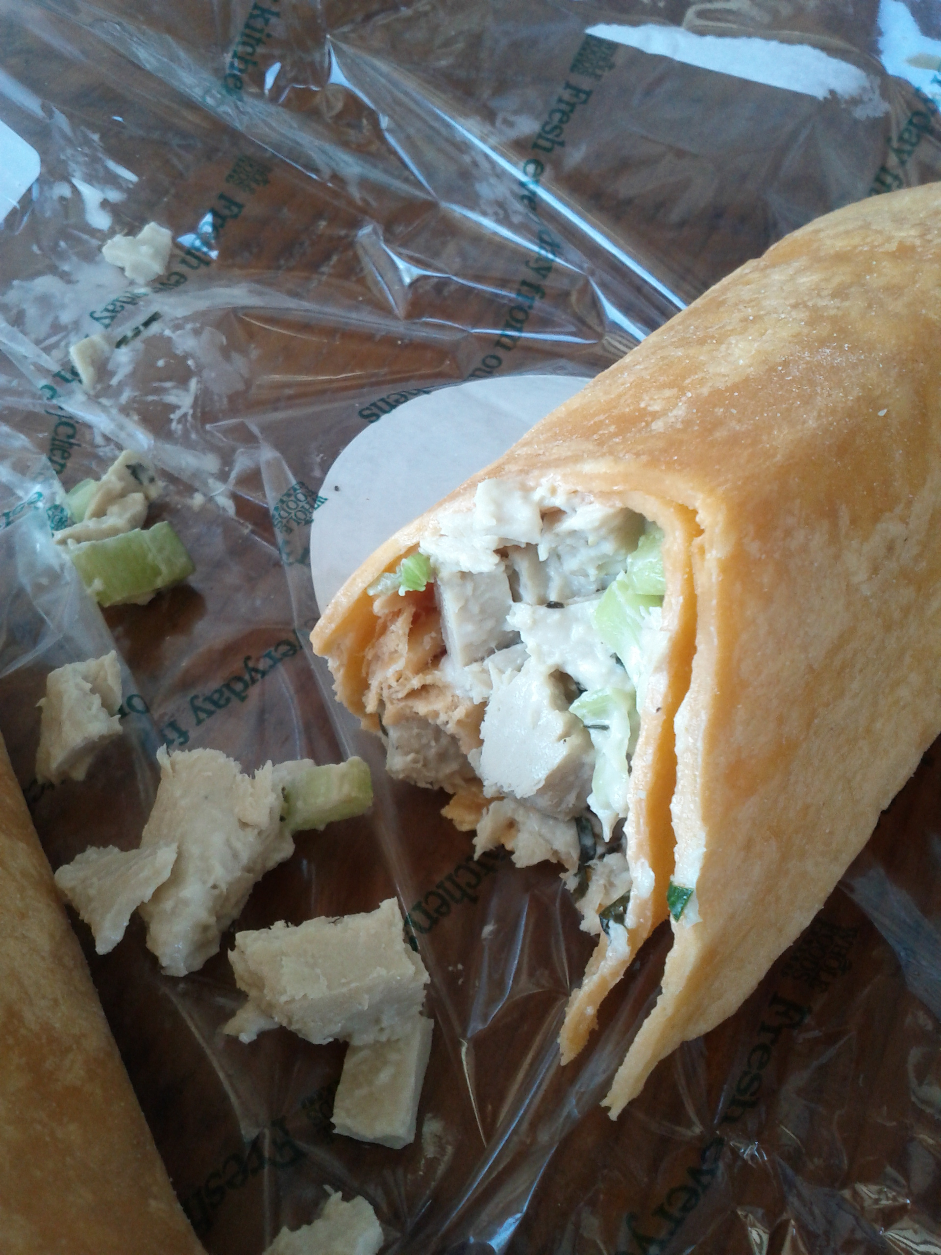 Les végétariens vont se reconnaître dans mon expérience. Vous savez, quand vous mordez dans un sandwich et que le plaisir initial est vite remplacé par un « merde, c’est de la viande… » ? C’est ce qui m’est arrivé ce midi. J’ai dû regarder mon emballage 2 fois pour être bien certaine de ne pas m’être trompée. Même ‘à froid’, sans sauce, les morceaux de poulet goûtent… le poulet. La texture, le goût, le gras, tout y est. En revanche, pas de souffrance, pas de cholestérol, moins de CO2, que du bio. Que demander de plus ? En plus, il coûte le même prix que le « vrai » poulet.