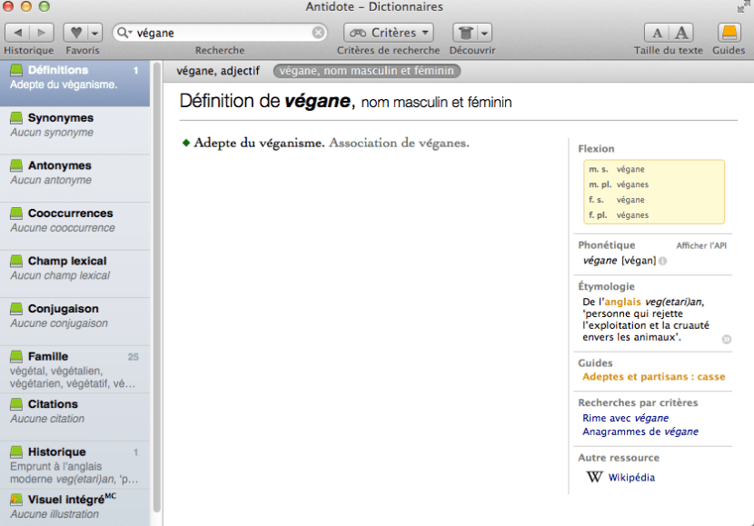 - le dictionnaire Antidote (à compter de la version 8.4)