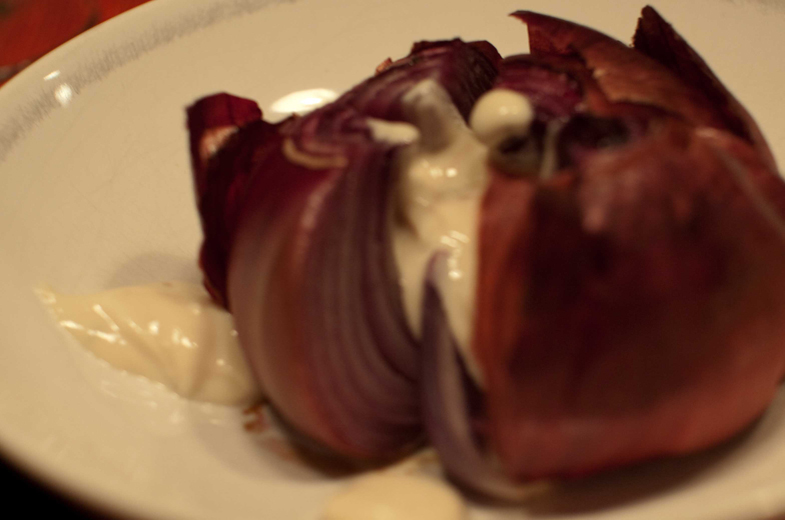 Lorsque j’ai visité Proef, le restaurant de la designer Marije Vogelzang j’ai été absolument séduite par l’oignon rouge cuit au four. La serveuse m’avait alors expliqué que l’oignon était simplement cuit à feu doux, dans sa peau, pendant environ une heure. C’est tout. Vraiment ? Oui oui. J’y croyais pas trop, mais fallait bien essayer.